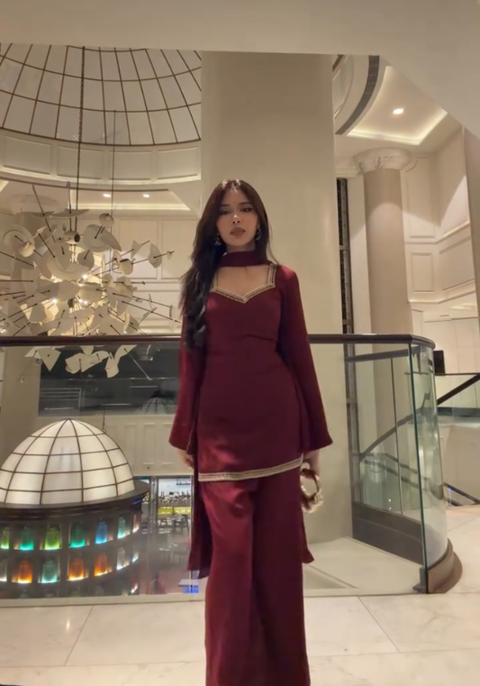 MD Premium Maroon Georgette Suit – Kurta, Pant & Dupatta Set
