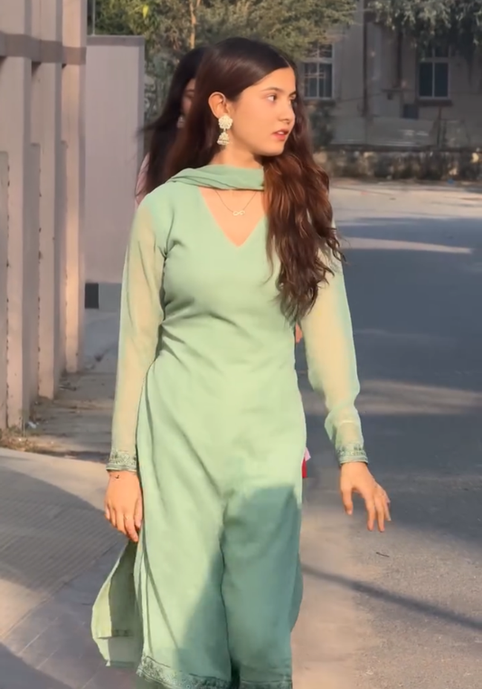 Soft-Girl Aesthetic Georgette Kurta Pant Dupatta Set