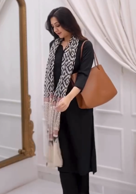 Minimalist Black Kurta Set with Vibrant Dupatta