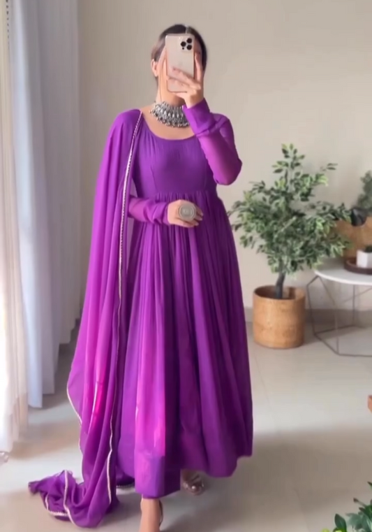 Royal Purple Heavy Georgette Flare Maxi with Dupatta