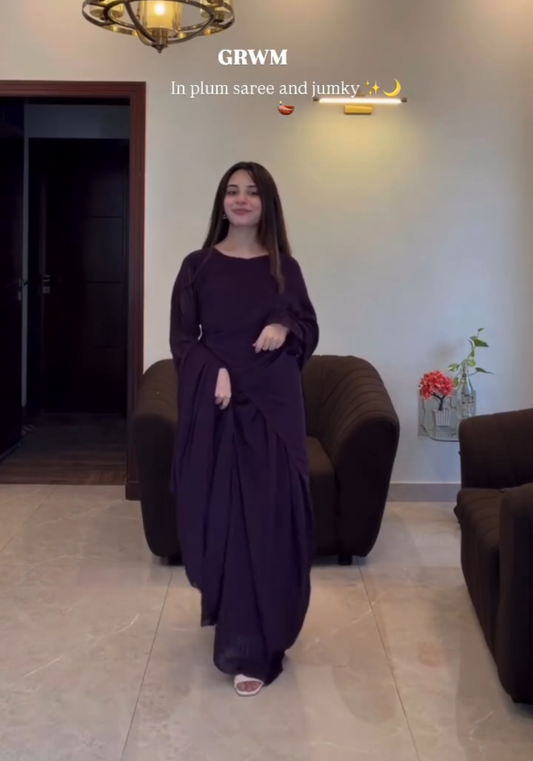 Plum Wine Draped Gown- Saree with Detachable Pallu