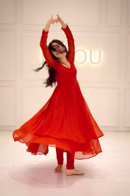 Gulabi Grace- Pink bandhej georgette anarkali with dupatta