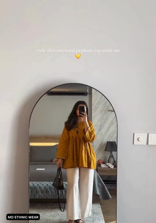 MD Mustard peplum Top and Plazo Set