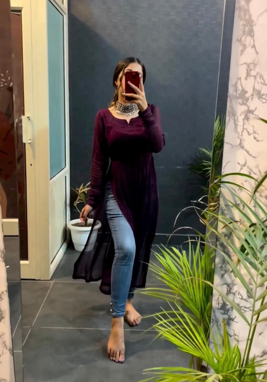 Sold outMD Wine Nyra Cut Georgette Kurti