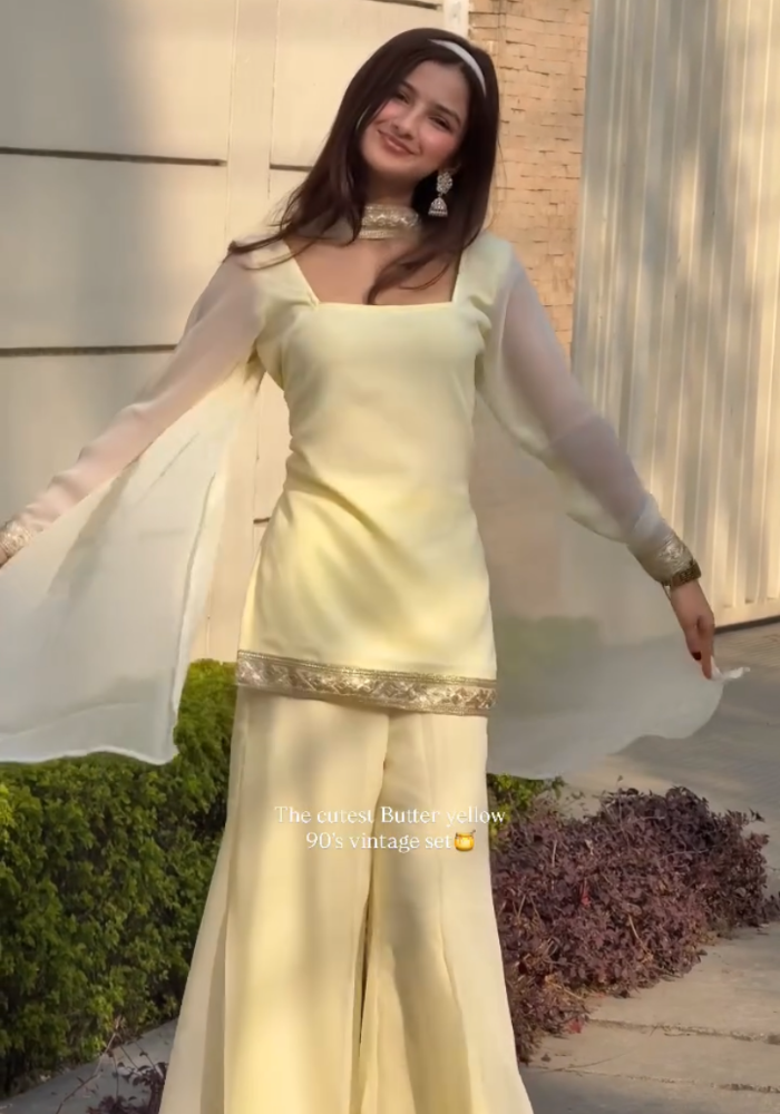 Soft, subtle, and effortlessly elegant — Butter Bloom is a butter yellow georgette kurti pant dupatta set inspired by 90s vintage charm and modern minimalism. Crafted in lightweight, flowy georgette, this set feels airy and graceful with every movement. The delicate lace border detailing adds a hint of festive elegance, while the soft inner lining ensures comfort throughout the day.