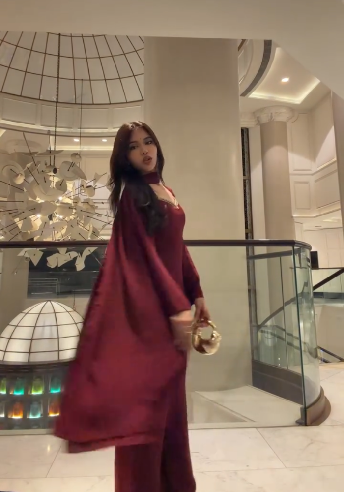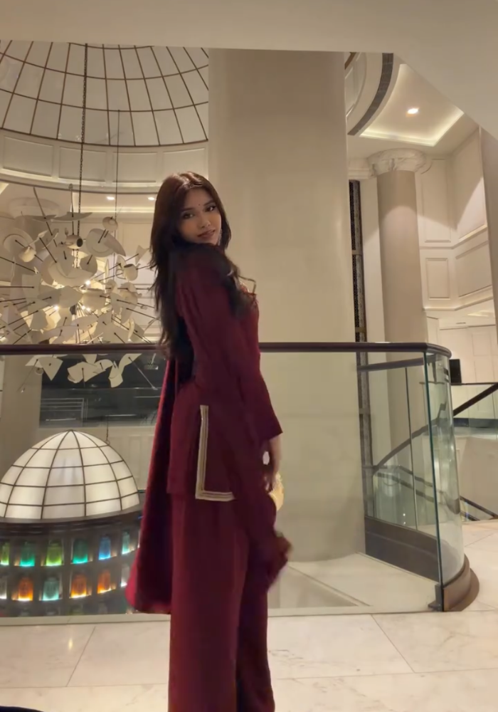✔️ Soft, flowy premium georgette ✔️ Elegant square-V neckline with gold border ✔️ Matching detailing on kurta, pants & dupatta ✔️ Lightweight, comfortable & premium fall ✔️ Perfect for parties, receptions, festive evenings & luxury outings